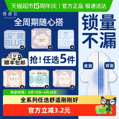 推荐理由:她研社日夜用姨妈巾任选5件!大牌子值得信赖,厚度试中,舒适度好,透气性好,量大也很好吸收,清爽舒服不侧漏!